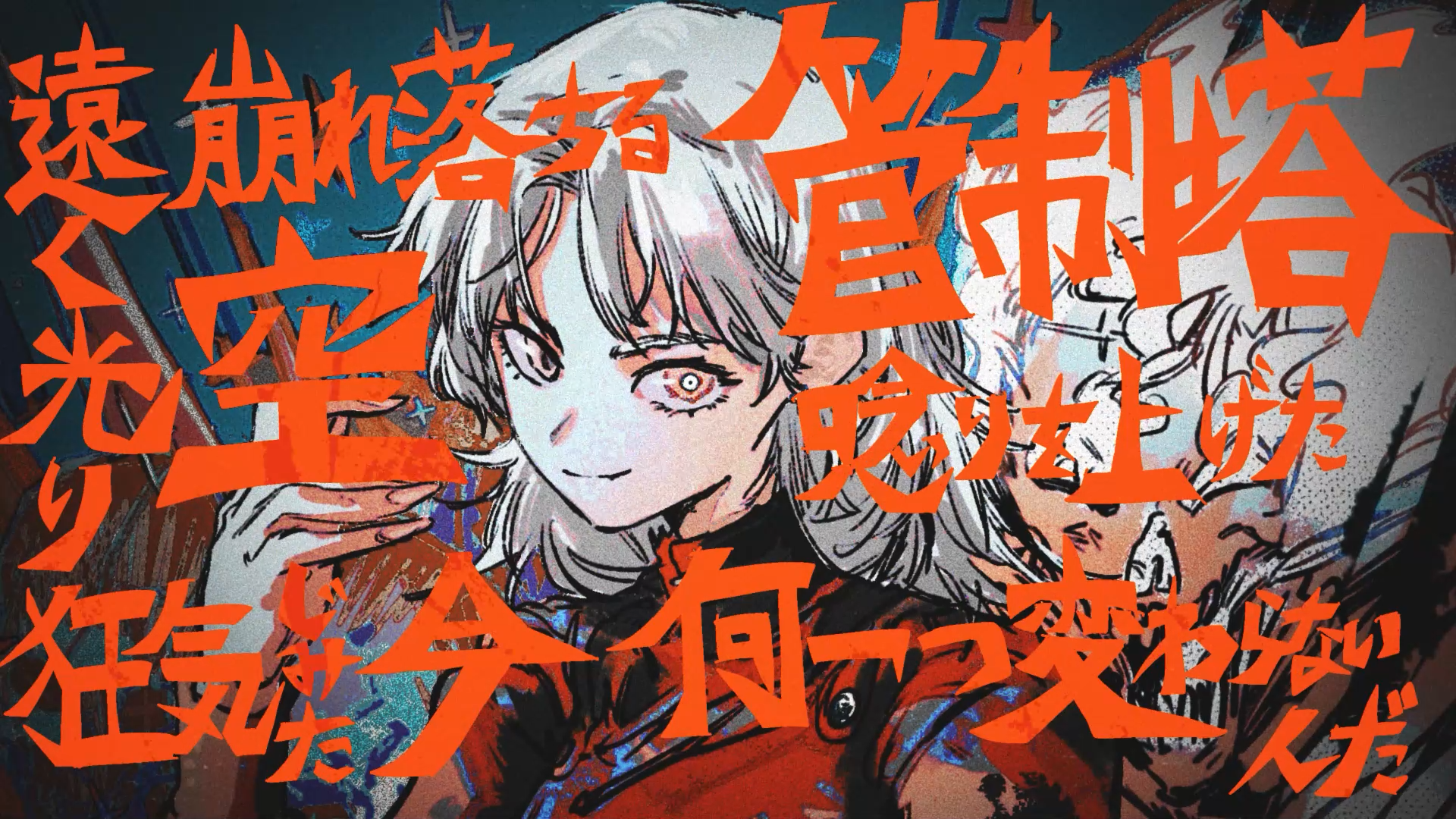 本作品はクライアント側からイラストをいただき、それをもとに演出を考えました。曲から連想された廃墟や工事現場のような「近づいてはいけない場所」をモチーフにして、完成を目指しました。一枚絵のイラストをリリックモーションや3DCGを用いることで、様々な見せ方をするよう意識しました。リリックのテキストは作字しました。